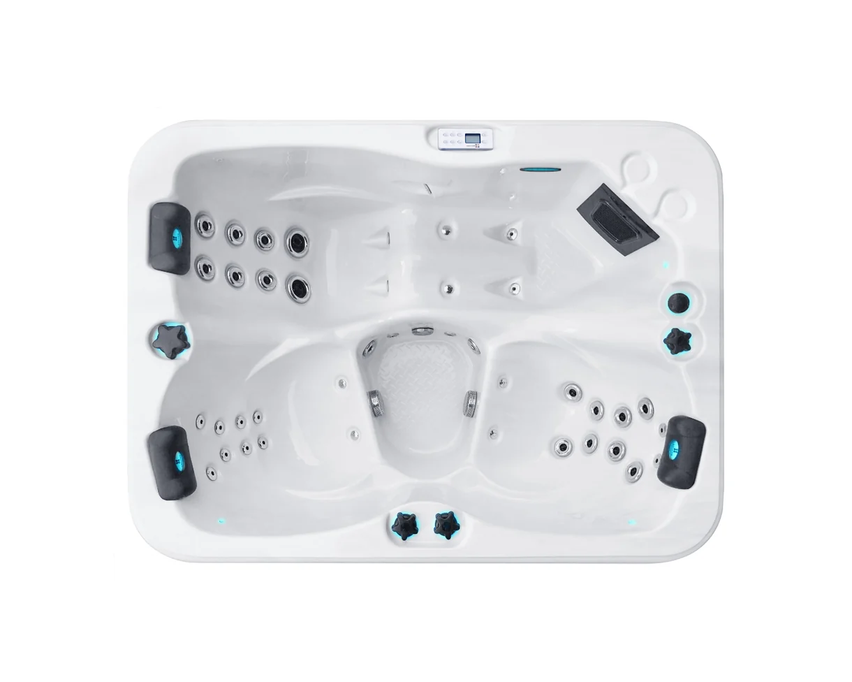 Le spa Renew a été spécialement conçu pour s’adapter aux espaces restreints. Compact et élégant, il accueille jusqu’à trois personnes tout en garantissant un niveau de confort et de performance remarquable. Ses assises ergonomiques permettent de s’installer en position assise ou allongée pour un moment de détente optimal. Les spas de la gamme Passion sont équipés de jets de massage puissants et réglables, permettant de personnaliser entièrement votre séance. Chaque jet est conçu pour cibler des zones précises du corps, offrant ainsi une véritable expérience d’hydrothérapie, à la fois relaxante et bénéfique.